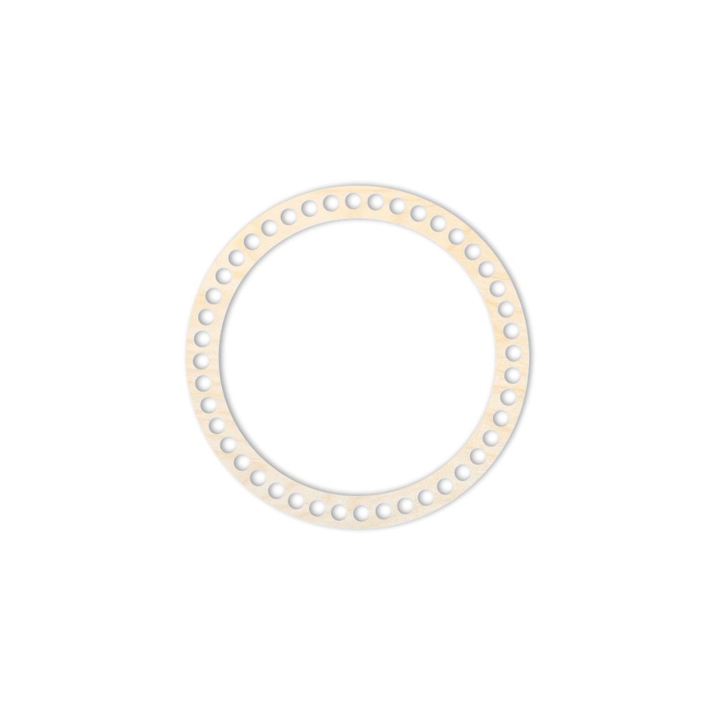 Anello di rinforzo per coperchio rotondo con un diametro di 15 cm, realizzato in compensato di betulla dello spessore di 3 mm, adatto per la realizzazione di cestini all'uncinetto con filati di spago o cordoncino.