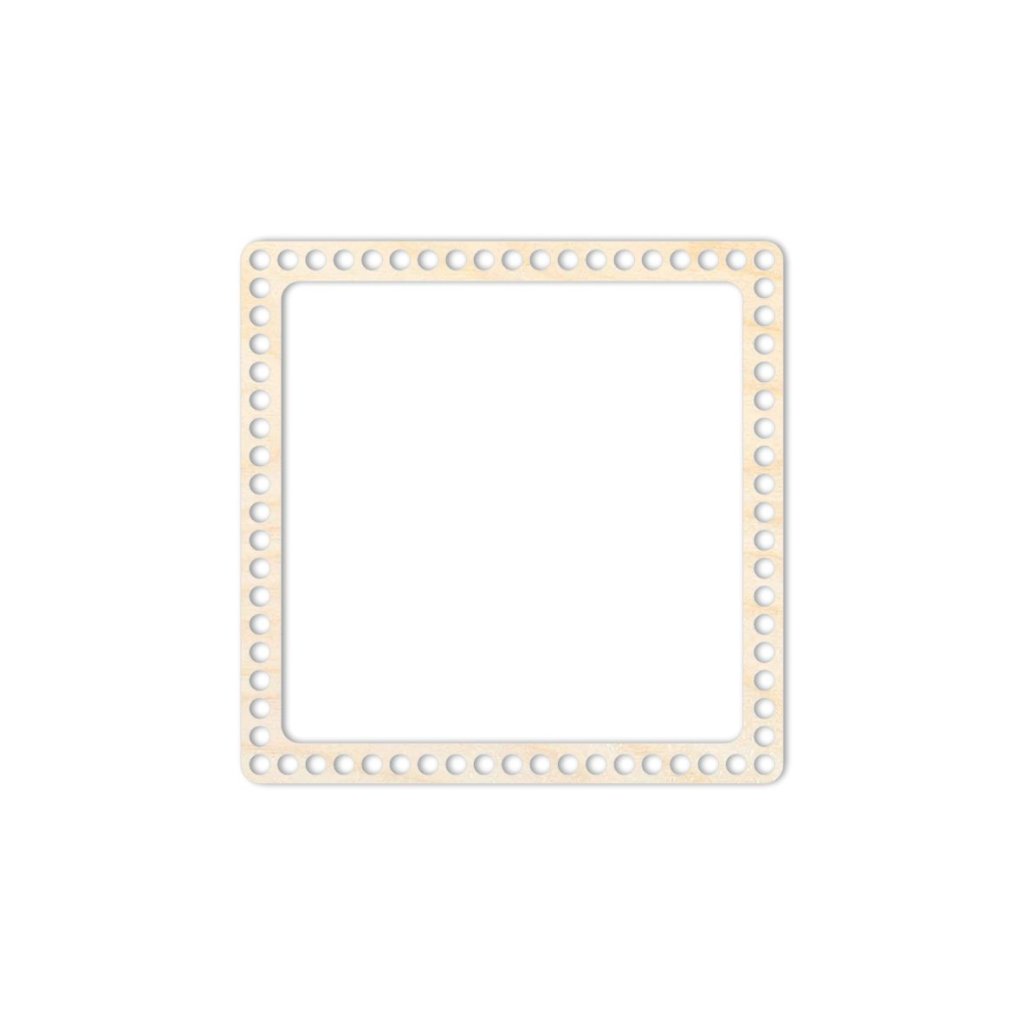 Anello di rinforzo per coperchio quadrato di dimensioni 20 x 20 cm, realizzato in compensato di betulla di 3 mm di spessore, ideale per la creazione di cesti all'uncinetto con filati in fettuccia o cordino.