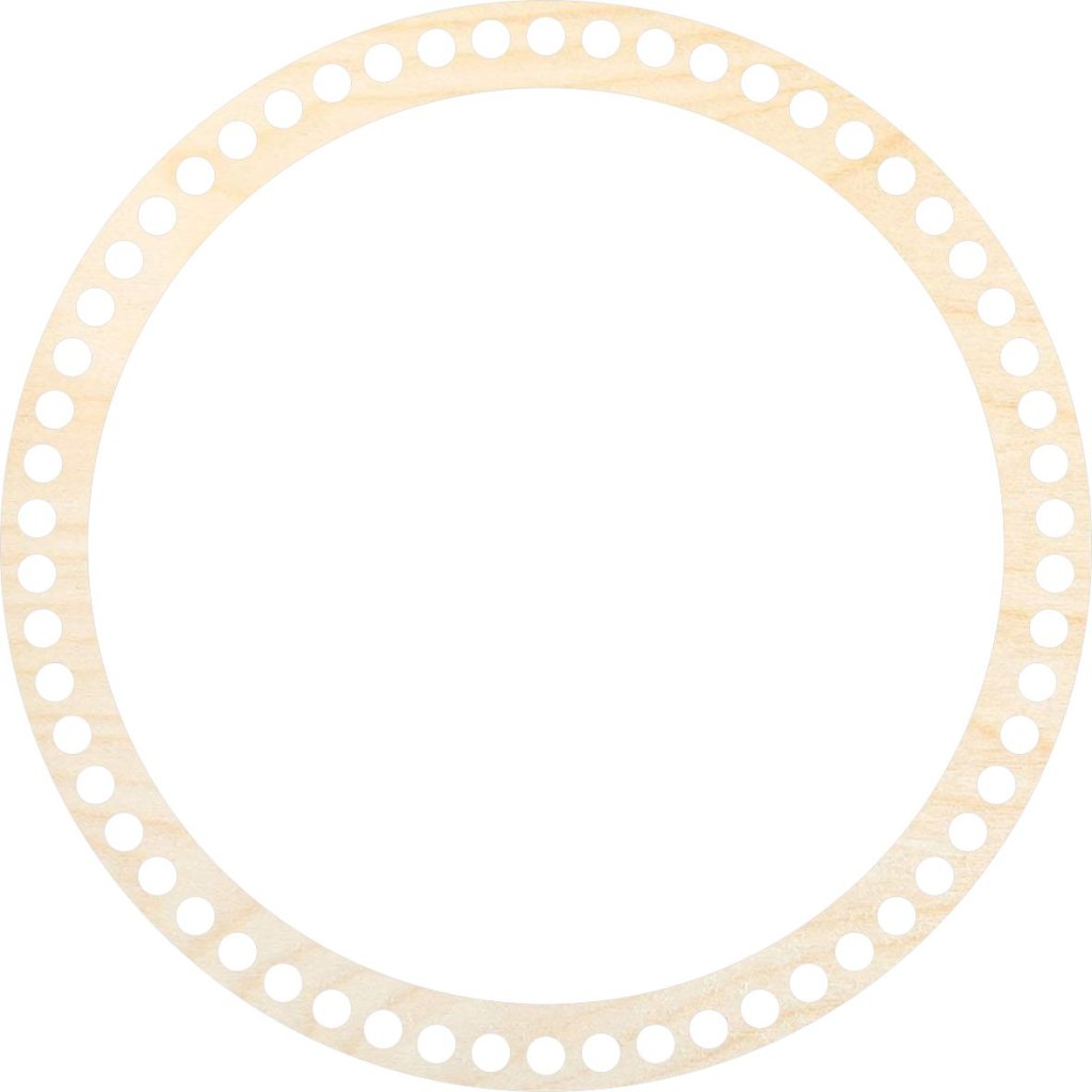 Anello di rinforzo per coperchio rotondo di 25 cm di diametro, realizzato in compensato di betulla di 3 mm di spessore, adatto per la creazione di cestini all'uncinetto con filati in spago o cordoncino.