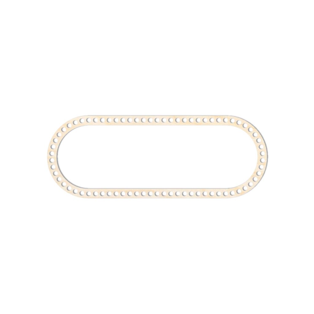 Anello di rinforzo per Base ovale, delle dimensioni di 40 x 15 cm, realizzato in compensato di betulla di 3 mm di spessore, ideale per la realizzazione di cestini all'uncinetto con filati a spago o a cordoncino.