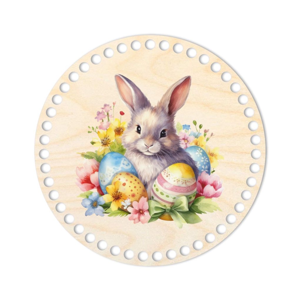 Questo Base circolare in compensato di betulla con un bellissimo motivo pasquale, del diametro di 20 cm, non è solo una base solida per cestini all'uncinetto, ma può anche essere utilizzato come coperchio elegante.
