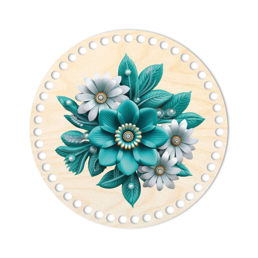 La base rotonda in compensato di betulla con motivo floreale turchese, dal diametro di 20 cm, è una solida base per cestini all'uncinetto, che può essere utilizzata anche come coperchio elegante. Con uno spessore di 3 mm e un diametro di 20 cm, fornisce una resistenza sufficiente per il tuo cestino e dona a ogni creazione un aspetto naturale ed esteticamente gradevole.