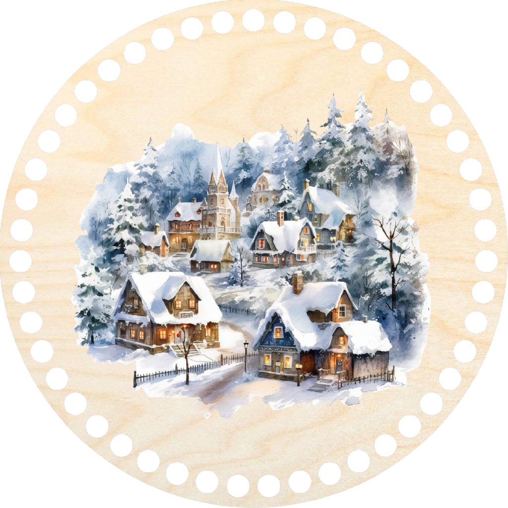 Base, coperchio, cerchio 20 cm, villaggio invernale