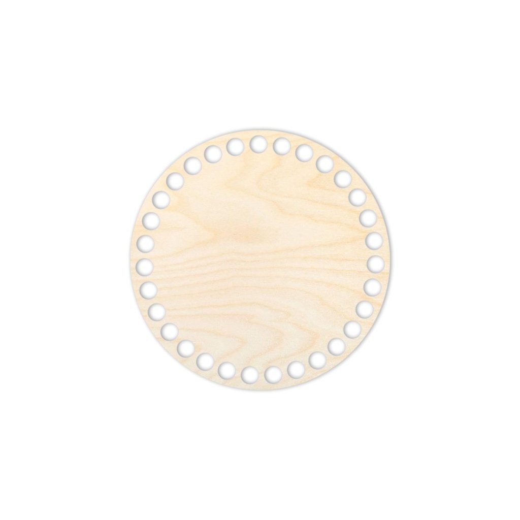 Base rotondo in legno di 20 cm di diametro, realizzato in compensato di betulla con uno spessore di 3 mm, adatto per la realizzazione di cesti all'uncinetto con filati spaghetto o cordino di spessore 9 mm, i cosiddetti filati JUMBO. Il cesto realizzato può essere utilizzato come decorazione o contenitore.