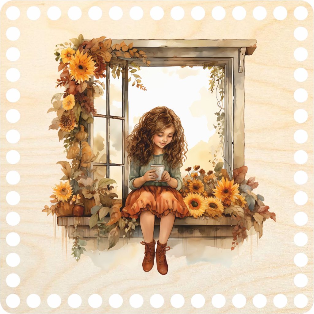 Base/coperchio - quadrato 20x20 cm, Ragazza alla finestra