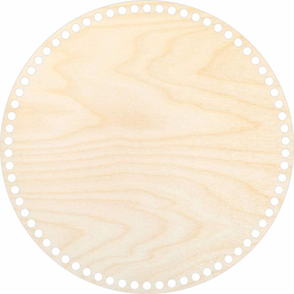 Base rotondo in legno del diametro di 30 cm, realizzato in compensato di betulla di spessore 3 mm, adatto per la realizzazione di cestini all'uncinetto con filati in spago o cordino. Il cestino realizzato può essere utilizzato come decorazione o come contenitore.