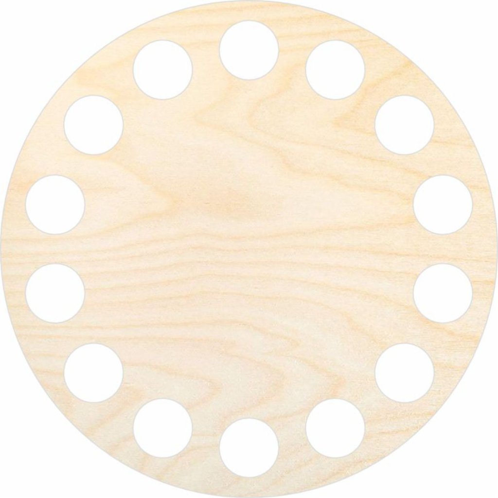 Base rotondo con diametro di 5 cm, realizzato in compensato di betulla di 3 mm di spessore, adatto per la creazione di cestini all'uncinetto con filati tipo spago o cordino. Il cestino realizzato può essere utilizzato come decorazione o come contenitore. I fori sono adatti solo per cordini con spessore di 3 mm !!!