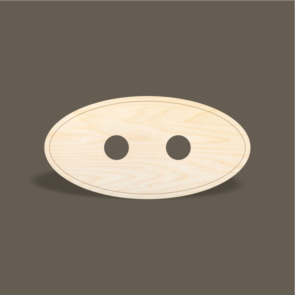 Bottone decorativo ovale in legno con due fori, realizzato in compensato di betulla spessore 3 mm. Con il bottone puoi decorare i tuoi prodotti.