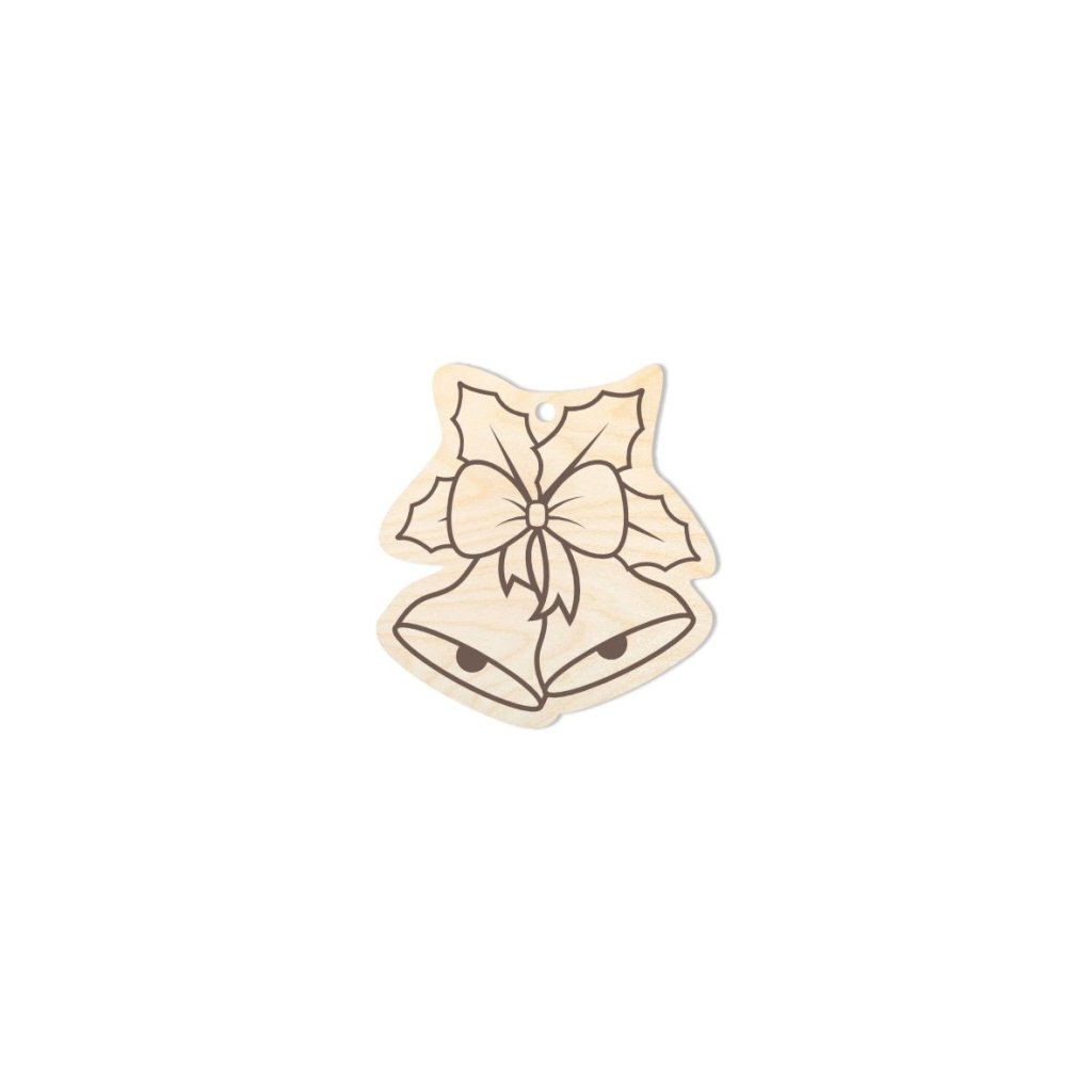 Campanella delle dimensioni di circa 4 x 3,7 cm, tagliata da compensato di betulla di spessore 3 mm. Il prodotto non è trattato in superficie, adatto per ulteriori decorazioni di prodotti finiti o semplicemente come decorazione. Per la colorazione, si consiglia di utilizzare colori acrilici.