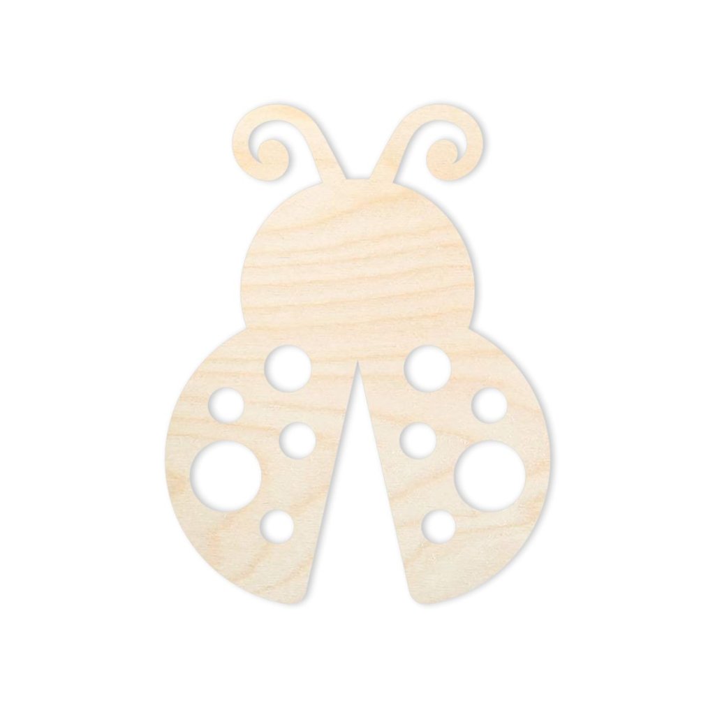 Coccinella in legno intagliata in compensato, adatta come decorazione da rifinire.