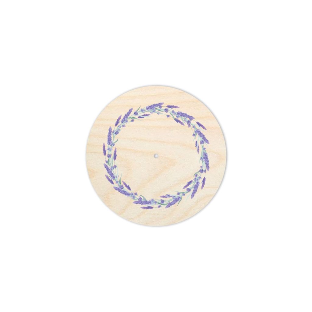 Coperchio con motivo "Cerchio di lavanda" per cestini realizzati con filati a spaghetti. Il motivo è stampato con stampante UV su coperchio in compensato di betulla.