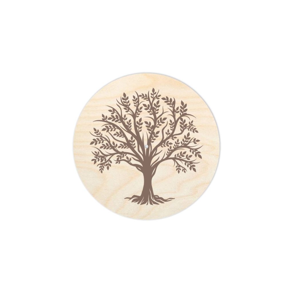 Coperchio con motivo "Albero della vita" per cestini realizzati con filati di spaghetti. Il motivo è stampato con stampante UV su un coperchio di compensato di betulla.