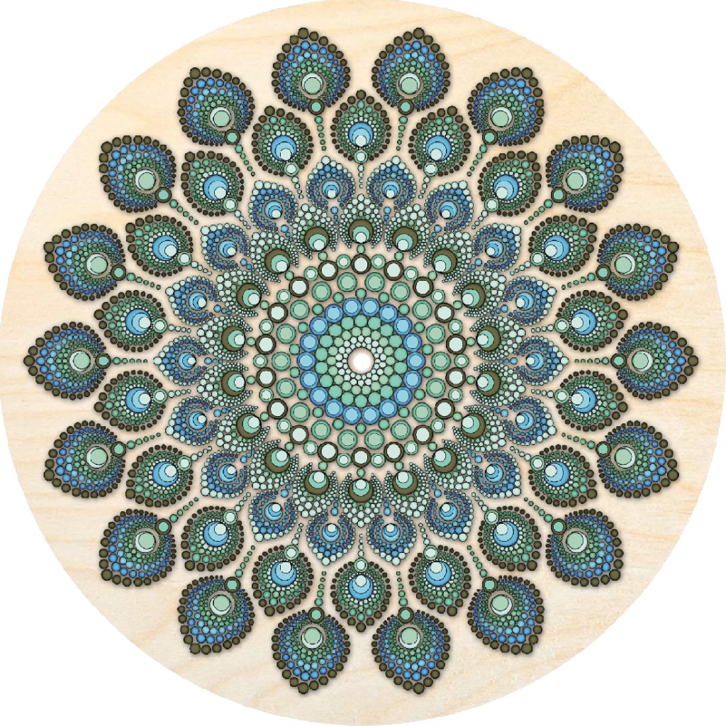 Coperchio con motivo per cesti realizzati con filati a spaghetti. Il motivo è stampato con stampante UV su coperchio in compensato di betulla.