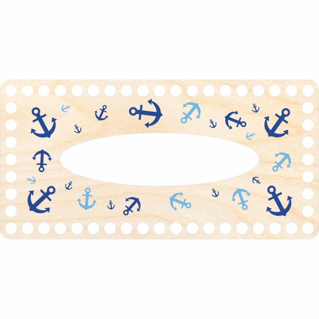 Scoprite il fascino della creazione manuale con questo elegante coperchio in legno per fazzoletti, realizzato in robusto compensato di betulla e decorato con un motivo di ancore nautiche. Ideale per creare una copertura all'uncinetto personalizzata.