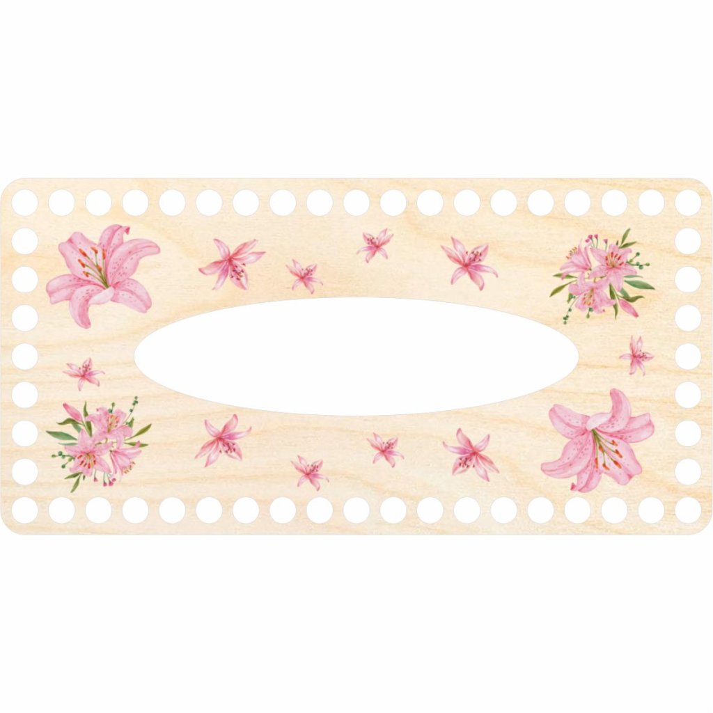 Scopri la magia della creazione artigianale con questo elegante coperchio in legno per fazzoletti, realizzato in robusto compensato di betulla e decorato con un motivo a gigli. Ideale per creare una cover all'uncinetto personalizzata.