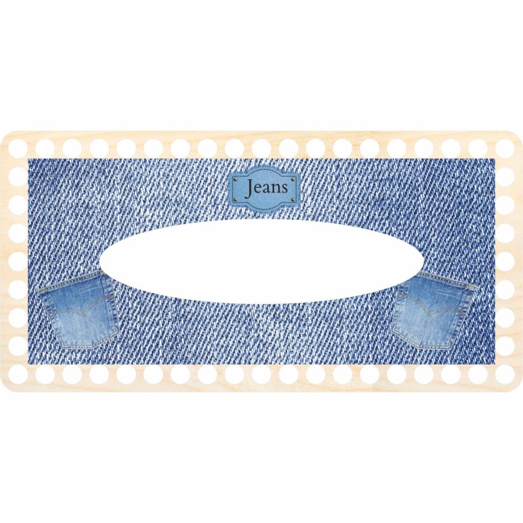 Scoprite la magia della creazione artigianale con questo elegante coperchio in legno per fazzoletti, realizzato in robusto compensato di betulla e decorato con un motivo jeans. Ideale per creare una custodia all'uncinetto personalizzata.