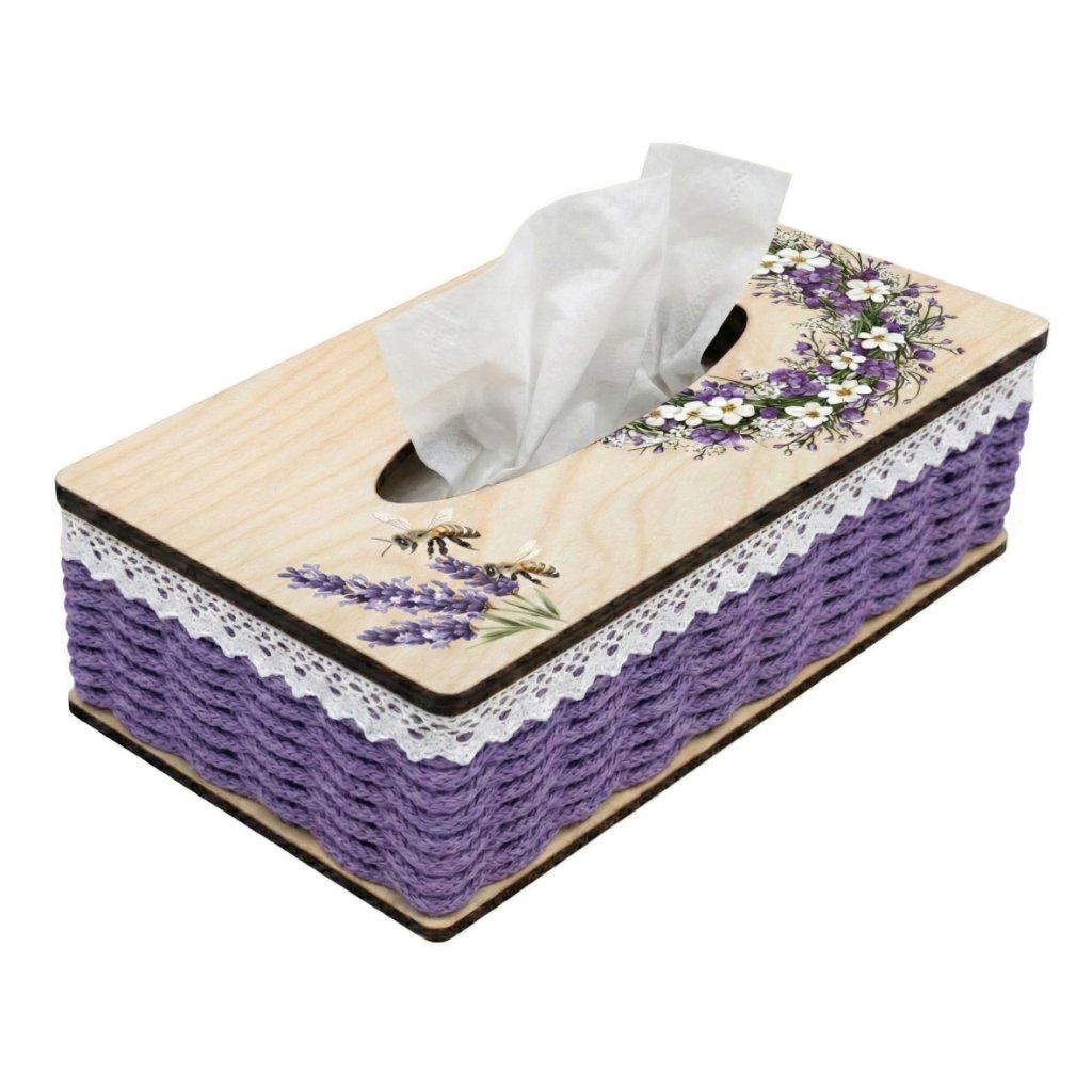 Copri scatola di fazzoletti da intrecciare – Api e lavanda