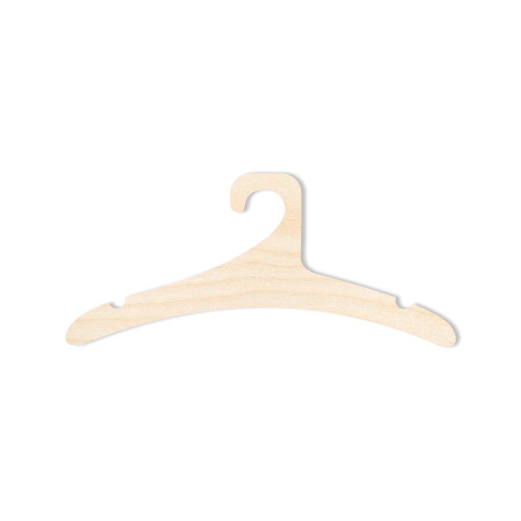 Gruccia intagliata per vestiti di bambole in compensato, adatta per ulteriori decorazioni, mordenzature o pitture, ad esempio con colori acrilici. La gruccia è realizzata in compensato di betulla spesso 3 mm.