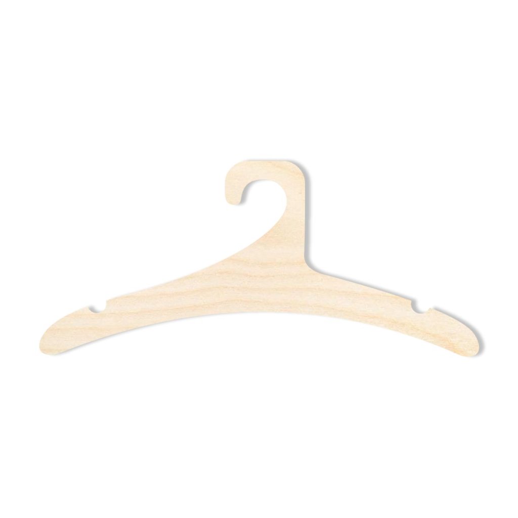 Gruccia intagliata per vestiti di bambole in compensato, adatta per ulteriori decorazioni, mordenzatura o pittura, ad esempio con colori acrilici. La gruccia è realizzata in compensato di betulla con uno spessore di 3 mm.