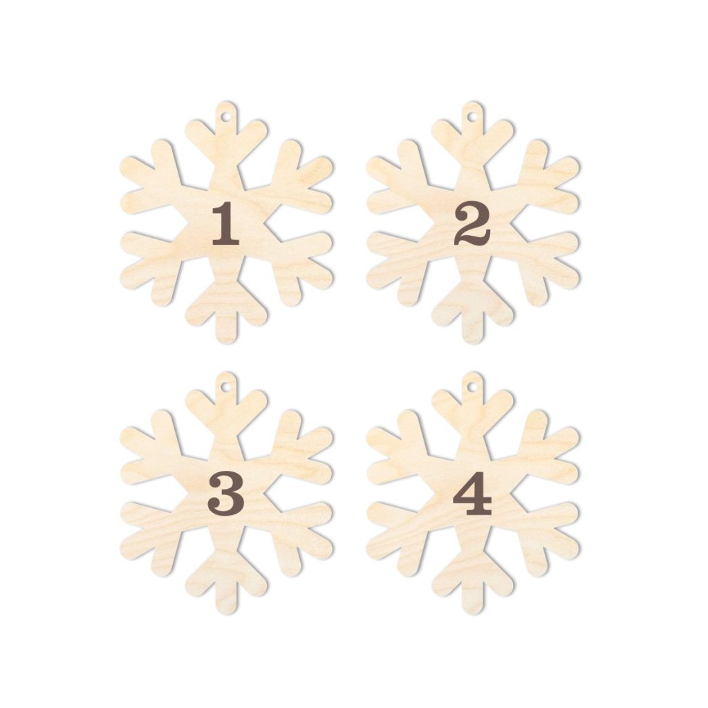 Set di 4 fiocchi di neve con i numeri da 1 a 4. Dimensione dei fiocchi di neve 3cm. Adatto per corone dell'Avvento e altre decorazioni.
