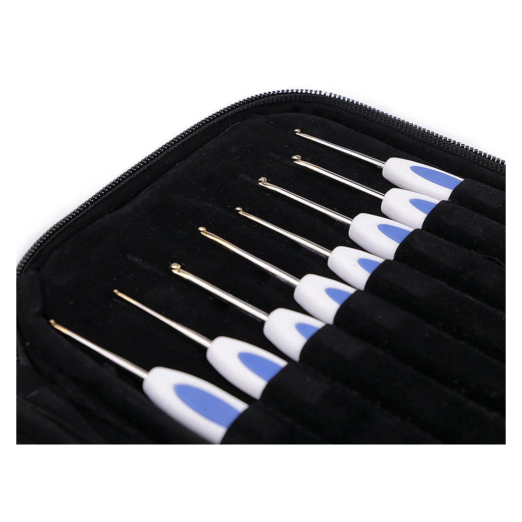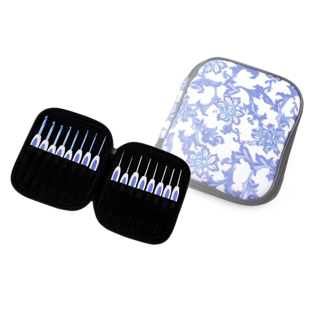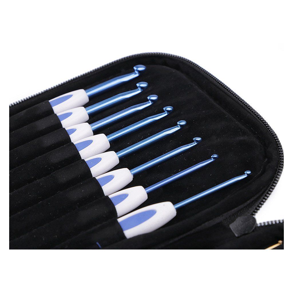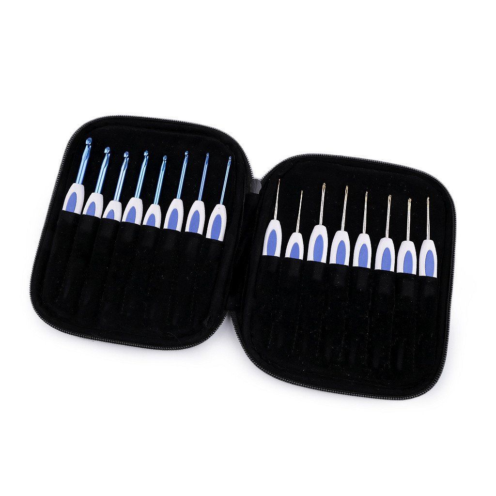 Set di uncinetti con impugnatura in silicone e accessori in custodia