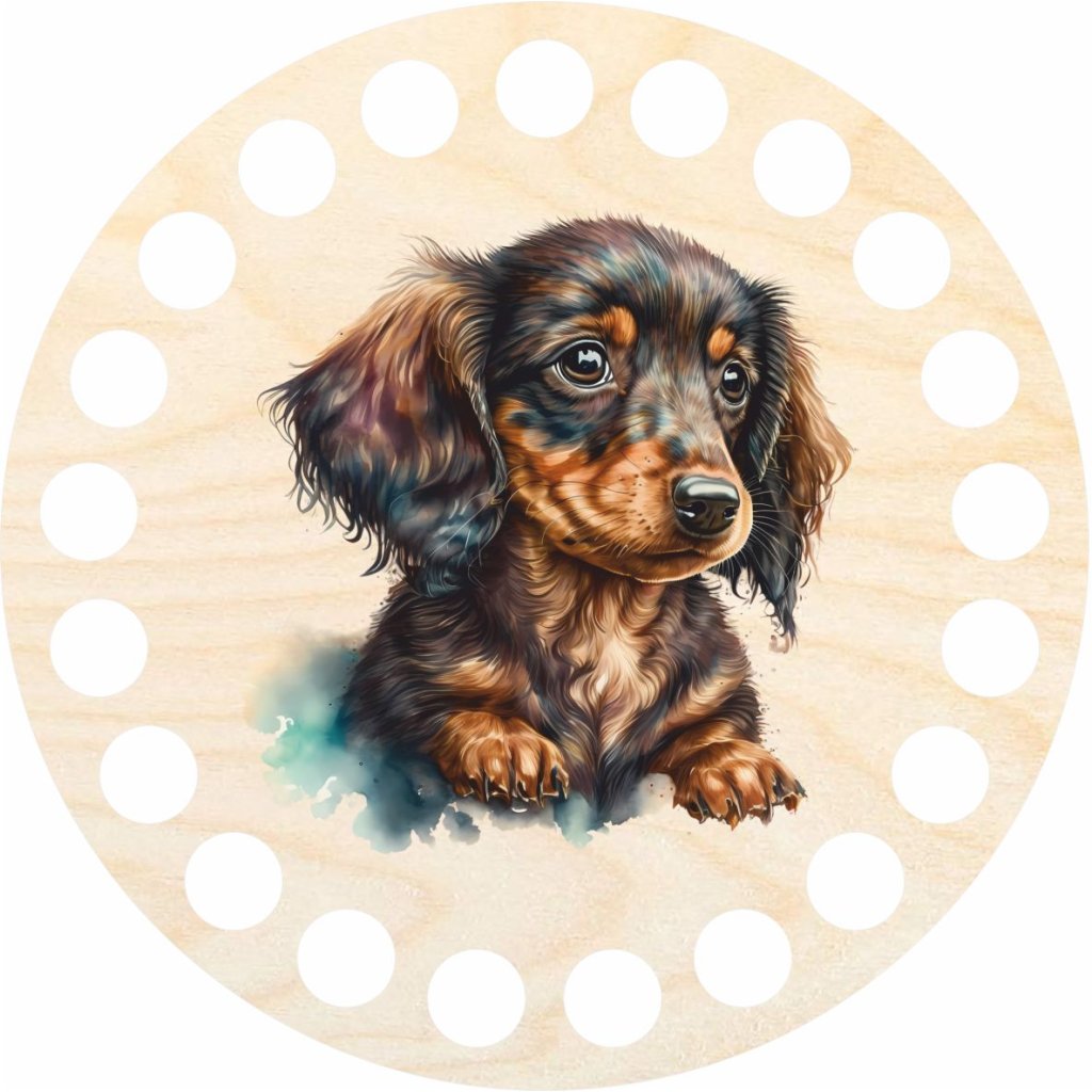 Questo intaglio circolare è la scelta ideale per gli amanti dell'uncinetto che desiderano creare sottobicchieri con un autentico aspetto naturale. Con un diametro di 10 cm e un materiale spesso 3 mm, fornisce una base solida per i tuoi prodotti fatti a mano. La sua superficie è impreziosita da un bellissimo motivo di bassotto, applicato con stampa UV per colori a lunga durata e resistenza allo sbiadimento. Questo metodo di stampa garantisce che il motivo rimanga vivido e pulito anche con un uso frequente.