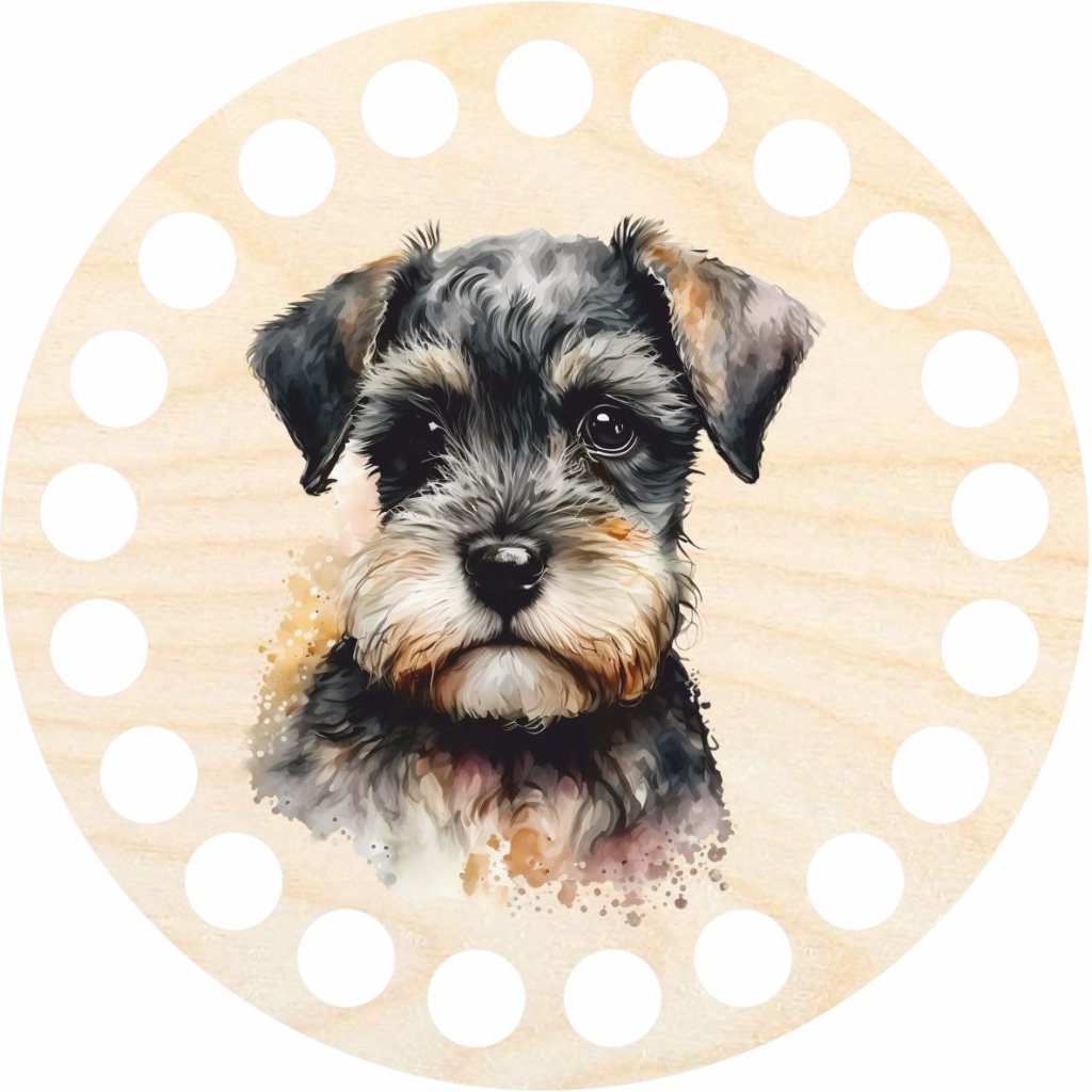 Questo ritaglio rotondo è la scelta ideale per gli amanti dell'uncinetto che desiderano creare sottobicchieri con un autentico aspetto naturale. Con un diametro di 10 cm e un materiale spesso 3 mm, fornisce una base solida per i tuoi prodotti fatti a mano. La sua superficie è impreziosita da un bellissimo motivo a cucciolo di schnauzer, applicato tramite stampa UV per colori duraturi e resistenza allo sbiadimento. Questo metodo di stampa garantisce che il motivo rimanga vivido e pulito anche con un uso frequente.