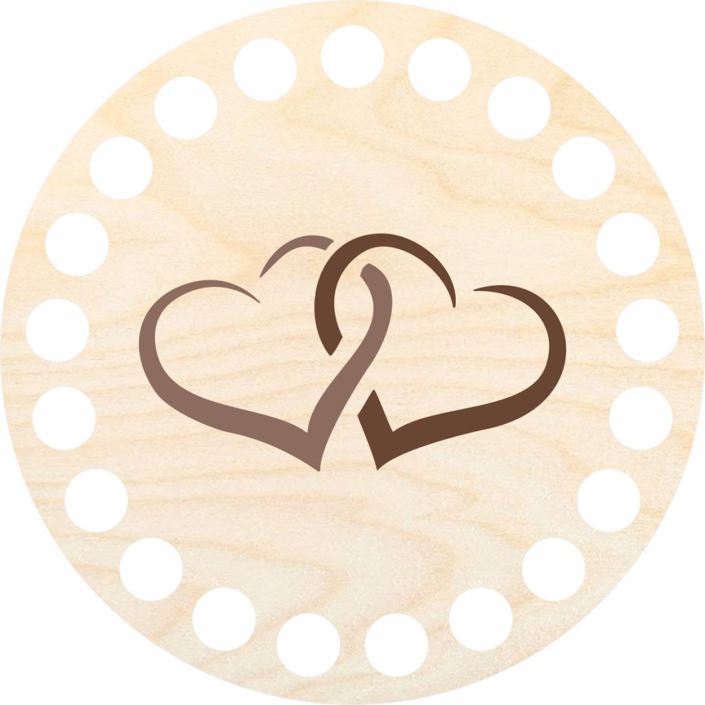 - Coperchio con motivo a due cuori per cestini realizzati con filati a spaghetti. Può essere utilizzato anche per la creazione di sottobicchieri.