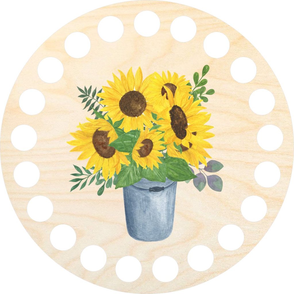 Sottobicchiere o coperchio per la creazione di cestini all'uncinetto con filati spaghetto e motivo a girasole stampato. Crea una serie di sottobicchieri unici. Nella nostra offerta troverai anche altri sottobicchieri o prodotti con design simili.
