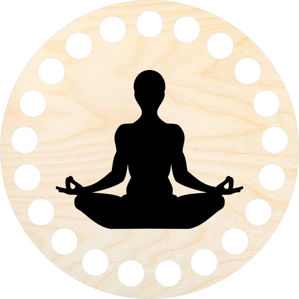 Coperchio per cestini realizzati con filati a spaghetti. Può essere utilizzato anche per realizzare sottobicchieri. Il motivo è stampato con una stampante UV su un coperchio in compensato di betulla.