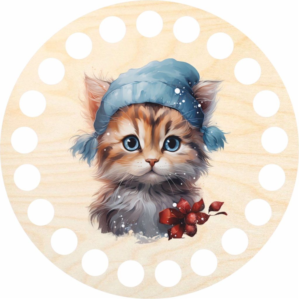 Coperchio per cestini realizzati con filati spaghetti. Può essere utilizzato anche per realizzare sottobicchieri. Il motivo è stampato con stampante UV sul coperchio in compensato di betulla.