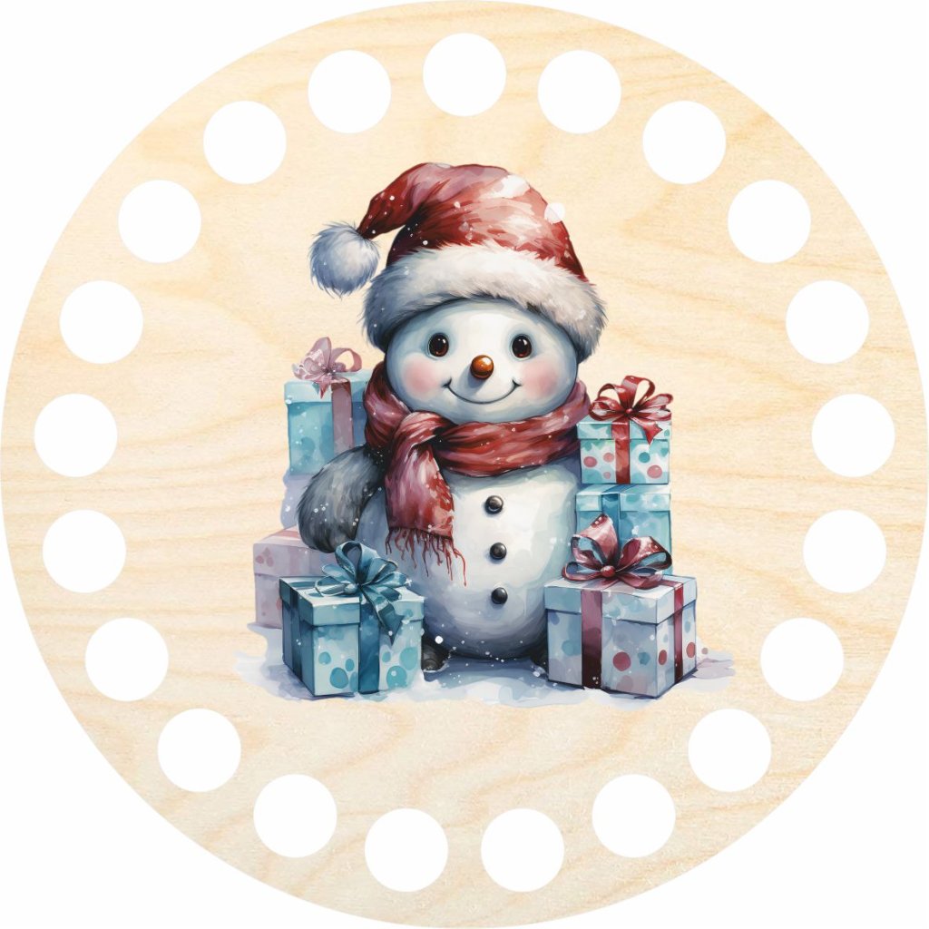 Coperchio per cestini realizzati con filati a spaghetti. Può essere utilizzato anche per creare sottobicchieri. Il motivo è stampato con stampante UV sul coperchio in compensato di betulla.