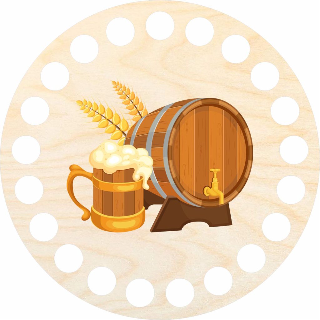 Coperchio per cesti realizzati con filati a spaghetti. Può essere anche utilizzato per la creazione di sottobicchieri. Il motivo è stampato con una stampante UV sul coperchio in compensato di betulla.