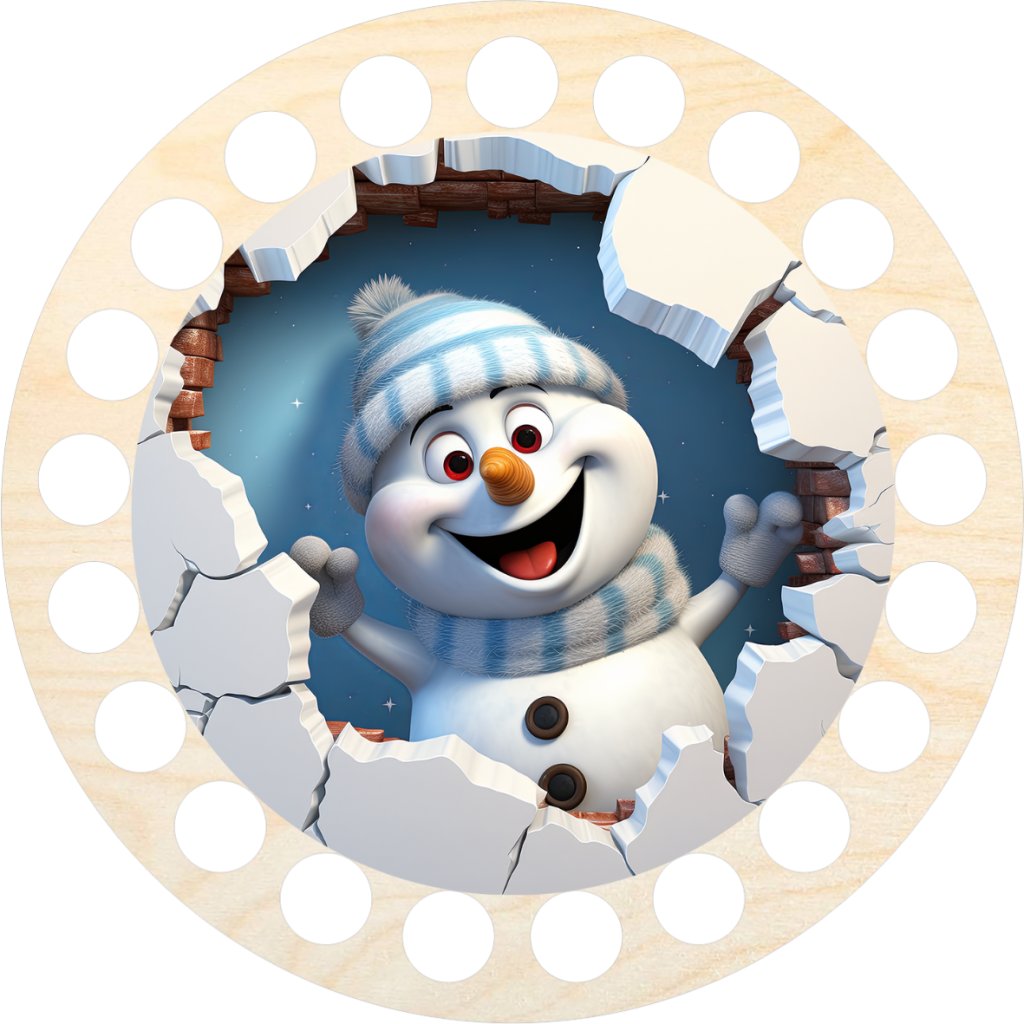 Coperchio per cestini realizzati con filati a spaghetti. Può essere utilizzato anche per realizzare sottobicchieri. Il motivo è stampato con stampante UV sul coperchio in compensato di betulla.