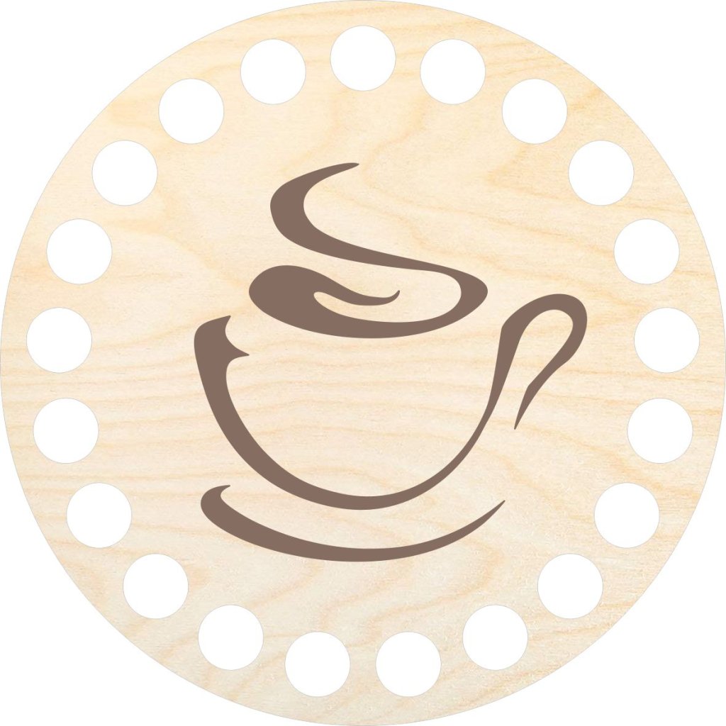 Coperchio per cestini realizzati con filati a spaghetti con motivo caffè. Il motivo è stampato con una stampante UV.